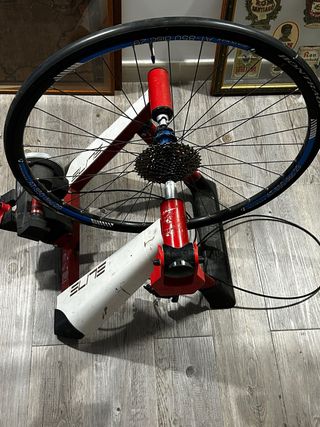 Rodillo de entrenamiento Elite Qubo Fluid. Muy silencioso. Rodadura muy similar a rodar en la calle.