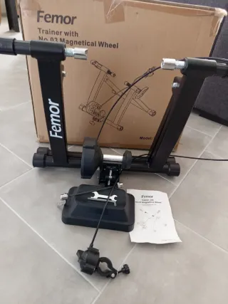 Rodillo de entrenamiento Femor con rueda magnética. Me costó en Amazon 75€. Lo compré pero no llegué a usarlo. - Modelo: Femor No.03. - Incluye manual de instrucciones y llave. - Compatible con bicicletas. Hago envío pero pesa bastante, por eso he puesto de 10 a 20 kg.