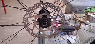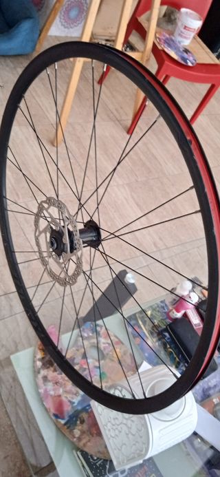 Rueda Merida Expert delantera, con disco incluido,aluminio esta en perfecto estado,ideal para rodillo o como segunda rueda de repuesto la entrego completa con recamara y cubierta. Es de eje pasante de 12 (no incluido).