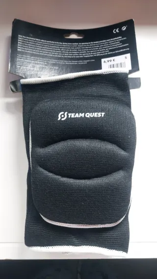 Vendo estas rodilleras nuevas sin estrenar de la marca Team Quest, diseñadas para proteger tus rodillas. - Color negro y blanco. - Talla S. - Logo de Team Quest en la parte frontal. - Acolchado para mayor comodidad.