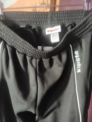 Pantalones deportivos negros de la marca Kipsta. Diseñados para la práctica de deportes. - Cintura elástica. - Detalle de ribetes blancos. - Acolchado en rodillas y muslos.