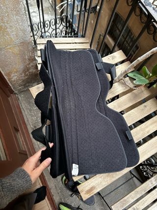 Patinete de rodilla VEVOR en color negro. Ideal para facilitar la movilidad. Me ayudo mucho cuando me fracture el tobillo y no podia apoyar el pie. Soporte estable y resistente para moverse en exterior. - Estructura metálica. - Ruedas todoterreno. - Asiento acolchado. - Cesta portaobjetos.