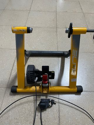 Rodillo de entrenamiento Elite Novo Force. - Estructura robusta de color blanco y rojo. - Diseño plegable para fácil almacenamiento. - Incluye rodillo de resistencia magnetico - incluye rueda 29" gratis. Se ha udado muy poco, no tiene desgaste la goma del rodillo