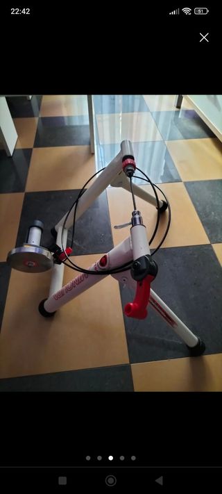 Rodillo para entrenamiento de bicicleta.En muy buen estado, prácticamente nuevo. Se puede ver y probar antes de comprar somos tienda. Incluye accesorios para levantar rueda delantera