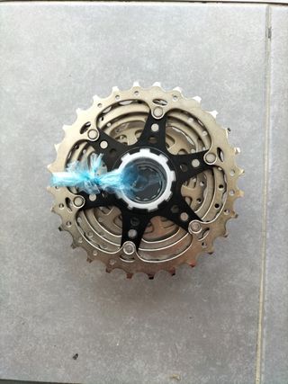 Muy poco uso. Se entrega con instrucciones, rueda con 9 piñones y 2 ejes para poder adaptar a la bici. Hay foto de la factura del precio original.