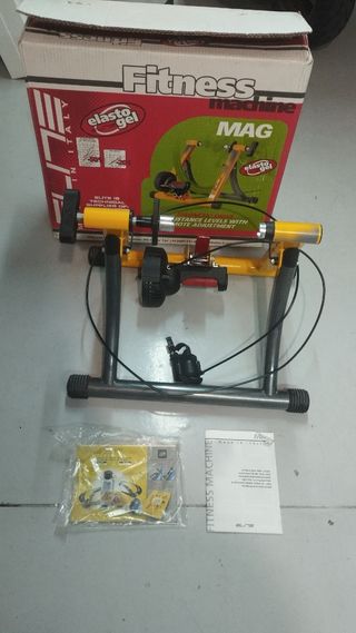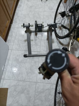 Rodillo para bicicleta en perfecto estado. Se ha usado dos veces. Tiene regulador, eje para rueda trasera y soporte de rueda delantera. Tengo su caja perfectamente conservada