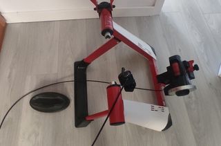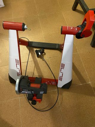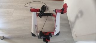 Rodillo de entrenamiento Elite. Poco uso, funciona bien - Estructura robusta en color rojo y blanco. - Diseñado para ciclismo indoor.