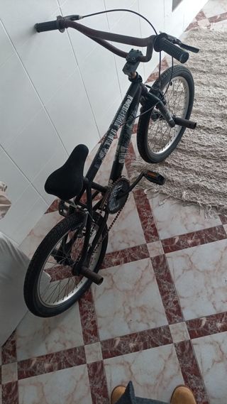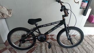 Bicicleta BMX de color negro, poco usada, ruedas nuevas, con rodillos delanteros y traseros incluidos