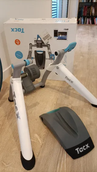 Soporte Tacx Flow Smart para entrenamiento de ciclismo. - Incluye soporte. - Incluye caja original. - Incluye elevador de rueda delantera. - Incluye rueda de entrenamiento y radio