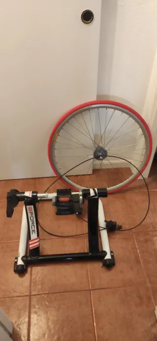 Vendo rodillo de entrenamiento para bicicleta y dos ruedas de carretera. El rodillo está en buen estado y las ruedas igual.Las ruedas son para zapata,shimano rs.negociable.