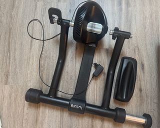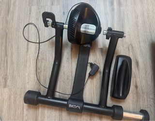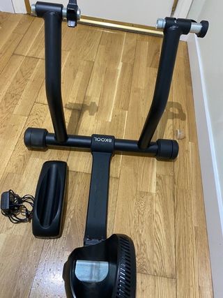 Rodillo Bkool Smart Pro 1 en buen estado, con poco uso. Ideal para entrenamientos en casa. - Modelo: Smart Pro 1 - Color: Negro - Incluye adaptador de corriente Es ligero (pesa alrededor de 12 kilogramos, no es mucho), y se fija a la rueda trasera de la bicicleta con un simple cierre rápido que viene incluido en el producto. Los brazos se pueden ajustar tanto en altura como en longitud horizontal, y una vez apretadas las tuercas la bicicleta es muy estable (permite ponerse de pie sin problemas