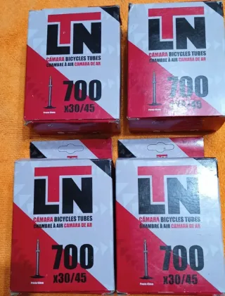 Pack de cuatro cámaras de aire para bicicleta marca LN. - Tamaño: 700x30/45. - Válvula Presta de 40mm.