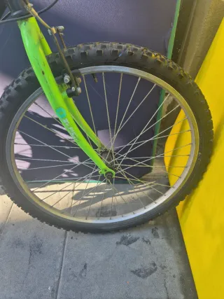 Bicicleta de montaña con ruedas de 24 pulgadas. - Cuadro de color negro con detalles en verde. - Horquilla delantera de color verde. - Sillín negro. - Ruedas con banda de rodadura para montaña. En perfecto estado La vendo porque a mi hijo se le ha quedado pequeña