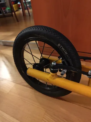 Venc bicicleta infantil BTWIN en molt bon estat. Ideal per a nens/es que estan aprenent a anar en bici. ✅ Inclou rodetes laterals (extraïbles) ✅ Rodes de 14 polzades ✅ Fre davanter i posterior ✅ Timbre inclòs ✅ Protectors de cadena ✅ Estructura resistent i lleugera Funciona perfectament. Té alguna marca d’ús normal, però està ben cuidada i llesta per utilitzar. Perfecta per iniciar-se i guanyar confiança abans de passar a una bici més gran 🚴♂️