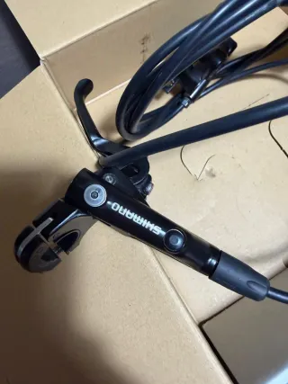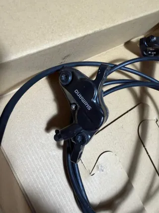 Set de frenos de disco hidráulicos Shimano MT501. Y MT520 - Incluye 2 pinzas de 4 pistones. - Incluye 2 manetas de freno. - Color negro.