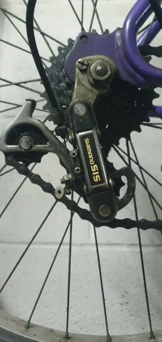 Antigua bicicleta de montaña BH América XS4. - Cuadro de color morado. - Ruedas de 26 pulgadas. - Frenos V-Brake. - Talla S/M Funcionando. Ideal para restaurar aunque funciona tal como está.
