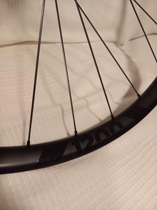 Rueda delantera FFWD con buje DT240s. * tiene una raja a la altura del agujero de la valvula!!!* aun así no me ha afectado mucho ni se ha descentrado, sigue igual de fina que el primer día. - Aro de carbono/ banda frenada aluminio. - Radios planos aero. - Buje de eje fino carretera