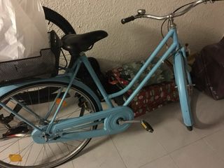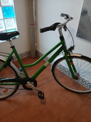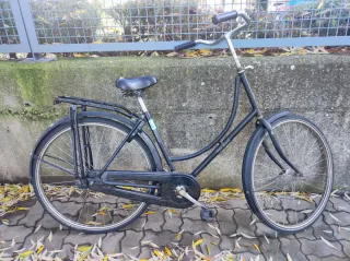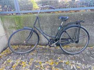 Bicicleta clásica holandesa, traída de Ámsterdam. Tiene un candado integrado en el cuadro para bloquear la rueda trasera. El sillín está cambiado por uno nuevo. Protector de cadena que evita mancharte el pantalón. Freno de contrapedal. Tiene un enganche delante por si se le quiere añadir una cesta. La vendo porque no la uso.