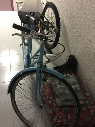 Bicicleta contrapedal de mujer de los años 80, en color azul y buen estado. Traída desde Alemania. - Tres velocidades. - Cesta trasera. - Contrapedal. - Luces delantera y trasera. - Timbre - Ruedas de 26 pulgadas. Precio negociable. Se escuchan ofertas razonables.