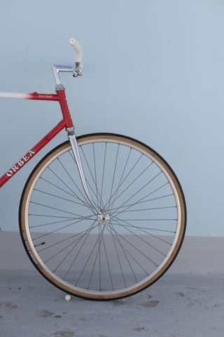 Bicicleta Orbea "Sierra Nevada" de carretera, fabricada por los años 1980 en España customizada con freno contrapedal. Un diseño único para disfrutar de la ciudad. Complementos adicionales. - Cuadro Orbea. - Manillar personalizado. - Rueda delantera con llanta de aluminio. - Neumático Michelin Dynamic Classic.