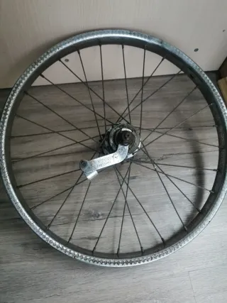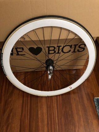 Rueda trasera de 700c para bicicletas singlespeed o fixie con freno contrapedal. Montada con neumático sólido, una pieza no Foam. Se puede cambiar pero te la entrego asi Ideal para Clásica de paseo o fixie más facilona. Precio orientativo. Haz tu oferta. - Llanta de aluminio. - Buje de acero. - Radios de acero. - Piñón fijo.