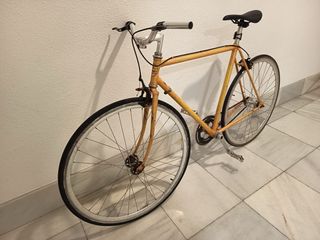 Bicicleta urbana con un diseño práctico y funcional. Para que necesite el mínimo mantenimiento necesario. Perfecta para la ciudad. - Cuadro de acero chromoly. - Manillar con cinta recién puesta. - Ruedas 28 pulgadas. - portabultos delantero. - Sillín de cuero negro Brooks (+50€). - cambios en buje interno 3 velocidades - freno contrapedal y delantero - recién cambiadas cámaras de las ruedas y cableado de frenos. - Luz delantera knog - candado kryptonite - Luz trasera skinlight integrada en la tija Es la bici urbana definitiva. No me interesan ni regateos ni cambios, compradores ciclistas que sepan lo que compran por favor 🚲