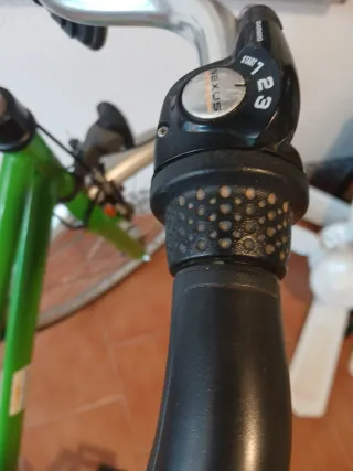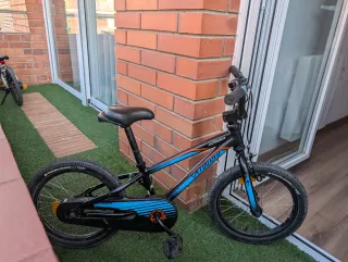 Vendo bicicleta infantil B’Twin de 16 pulgadas, perfecta para niños/as entre 4 y 7 años. La bici está en muy buen estado, usada con normalidad pero siempre cuidada. Lista para montar sin tener que hacerle nada. Características: Ruedas de 16” con buen agarre Frenos V-Brake delanteros y traseros nuevos Freno trasero tipo contrapedal (más seguro para peques) Protector de cadena con diseño de superhéroe Cuadro robusto, en color negro mate con detalles verde limón Guardabarros y luz trasera Pedales y puños en color verde - Cadena protegida con cubre cadena. - Ruedines no incluidos.