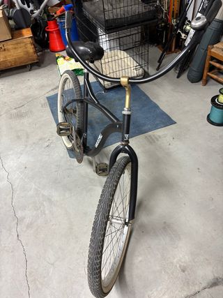 Bicicleta estilo cruiser con un diseño clásico y cómodo. Ideal para paseos relajados.contrapedal - Cuadro de color negro. - Manillar curvo. - Ruedas con banda blanca. shimano trek specialized giant cannondale Santa Cruz