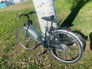 Bicicleta de paseo ciudad tipo holandesa con rueda de 26 pulgadas con muy poco uso. Ruedas nuevas Mitas. Se cambiaron por estar agrietadas por tiempo aunque estaban casi sin uso. Freno trasero a contrapedal. - Color burdeos. - Incluye timbre y bomba Cambio en buje trasero de 3 velocidades. Transportin con pinza Luz delantera y trasera por dinamo. No se envía, pero posibilidad de entregártela en casa tras la venta si esta dentro de Madrid.