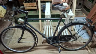 Muy buen estado considerando sus años. Grande. Recientemente revisada por completo, con rueda trasera nueva (incluido freno contrapedal - HollandBikeShop) y cubierta nueva (GoodYear Transit SUV S3). Esta bicicleta es silenciosa y extremadamente suave. Es una bicicleta muy duradera y muy fácil de mantener, especialmente porque tiene una sola marcha y freno trasero contrapedal. Perfecta para pasear por el pueblo o la ciudad, y más fiable y cómoda que una bicicleta de montaña de precio similar. Cosas esteticas: óxido superficial en la parte trasera del guardabarros, y centro del manillar y la carcasa de la luz trasera es dañada (fotos)