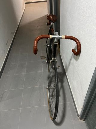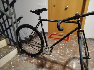 Bicicleta estilo fixie con freno contrapedal. Ideal para moverte por la ciudad con un diseño clásico y funcional. - Cuadro de color negro. - Ruedas de perfil. - Manillar curvo. La vendo por falta de uso