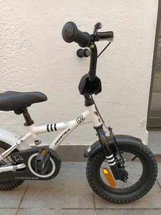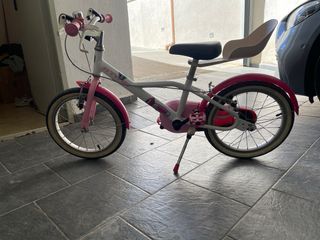 Bicicleta infantil Btwin en buen estado, casi nueva. - Color blanco con detalles en azul. - Ruedas de 16 pulgadas. - Frenos de mano y contrapedal.