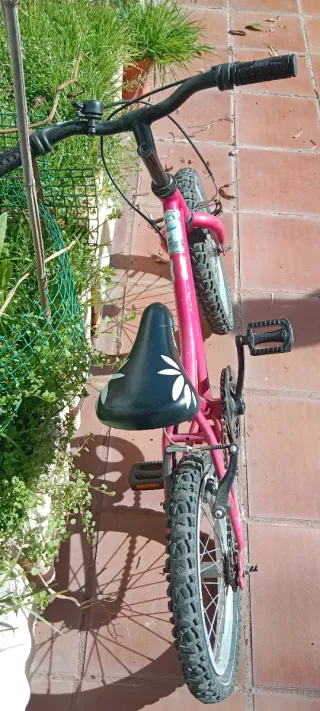 Bicicleta infantil de color rosa. - Ruedas de 16 pulgadas. - Sillín ajustable. - Frenos en manillar y contrapedal.