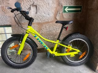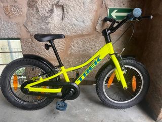 Vendo bicicleta infantil Trek Precaliber 16, comprada en diciembre de 2023 por 269 €. Utilizada únicamente por un niño. Siempre guardada en interior Características: Ruedas de 16 pulgadas Color amarillo brillante, muy visible y llamativo Cuadro ligero y resistente (aluminio Alpha Silver de Trek) Ruedas anchas para mayor estabilidad y seguridad Freno trasero de contrapedal + freno delantero de maneta (aprendizaje progresivo) Guardabarros delantero y trasero Cubrecadena cerrado (más seguridad) Sillín con asa integrada Bicicleta estable, ligera y muy fácil de manejar. Perfecta para aprender. Peso 6,8 Kg