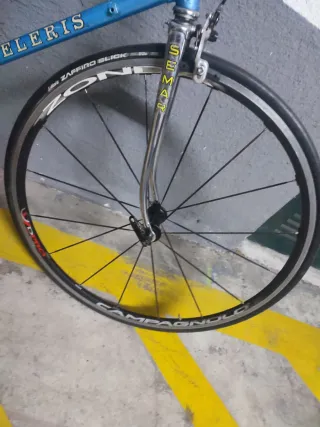 Bicicleta estilo fixie con freno contrapedal. Rueda delantera CAMPAGNOLO ZENDA y trasera WEINMANN DP 18
