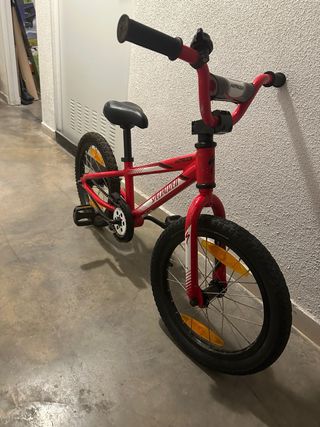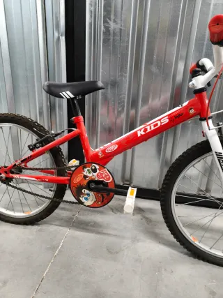 Bicicleta infantil de color rojo, ideal para los más pequeños. Ha tenido muy poco uso. - Diseño llamativo con personajes. - Ruedas de 16 pulgadas. - Frenos de mano y contrapedal. 135 largo 50 de rueda 60 suelo a sillín 70 suelo a centro manillar Peso 8 kilos