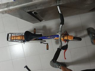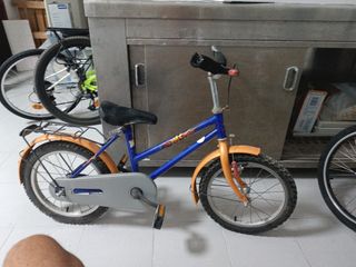 Bicicleta infantil de contrapedal, ideal para niñ@s. Está en buen estado, aunque muestra señales de uso. - Modelo de contrapedal. - Color azul y naranja. - Ruedas de tamaño pequeño. - porta bultos - Cubiertas en buen estado Lleva tiempo sin ser usada. Necesitaría una ligera puesta a punto: limpiarla un poco, engrasar la cadena, cambiar los manguitos del manillar. Regalo casco