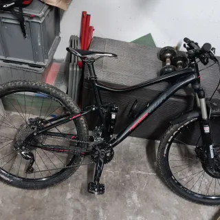 Bicicleta de montaña de color rojo, ideal para senderos y terrenos irregulares. - Cuadro de aluminio. - Suspensión delantera y trasera. - Ruedas de 29 pulgadas. - Frenos shimano xt - cambio shimano - Suspensión rockshox liryc