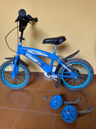 Bicicleta infantil azul rin 14 con rodines