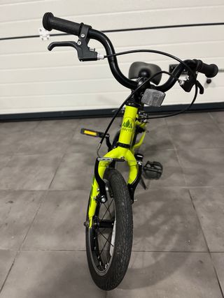 Bicicleta infantil Frog 40 (ruedas 14”). Muy ligera, ideal como primera bicicleta con pedales (first pedal). Comprada en 2023, pero usada muy poco (unas 10 veces). Funciona perfectamente y está en muy buen estado. Tiene un pequeño defecto en una de las empuñaduras del manillar (ver fotos), solo estético y fácil de cambiar. Perfecta para niños/as de aprox. 3–4,5 años.
