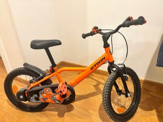Bicicleta infantil de la marca Btwin, ideal para los más pequeños. - Ruedas de 16 pulgadas. - Color naranja. - Incluye timbre.