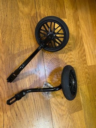 Ruedines de aprendizaje para bicicletas infantiles B'TWIN. - Compatibles con bicicletas de 14 y 16 pulgadas. - Fabricados en metal negro. Precio original en decathlon: 18 euros