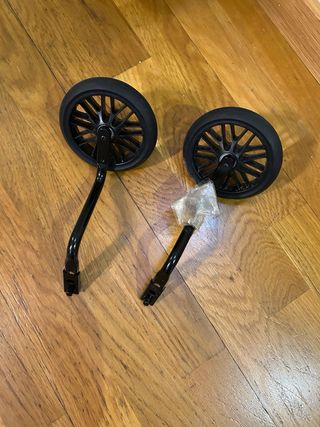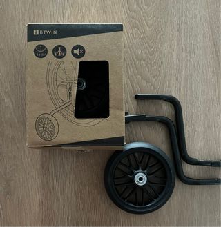 Ruedas estabilizadoras originales BTWIN (Decathlon) para bicicleta infantil de 14–16 pulgadas. ✅ Totalmente nuevas, nunca usadas. Se abrieron solo para comprobar el contenido. Incluye: – 2 ruedas – 2 soportes metálicos – Tornillos y piezas de montaje – Caja original Perfectas para que los niños aprendan a montar en bici con estabilidad y seguridad. Entrega en mano o envío por Wallapop.