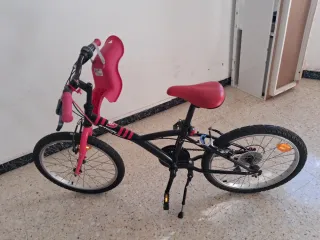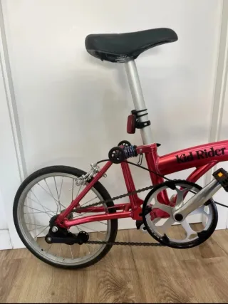 Bicicleta plegable de la marca Kid Rider en color rojo, es ideal para la ciudad, está en perfecto estado, como nueva(solo 1 semana de uso) con silla infantil extraible (peso de niño hasta 15kg) Ligera y fácil de plegar Color rosa fúcsia Diseño moderno - Cuadro metálico. - Ruedas de 16 pulgadas. - Sillín ajustable. - Pedales plegables.