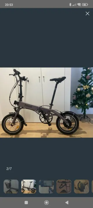 Bicicleta eléctrica Freeel de color gris, ideal para desplazamientos urbanos. Es plegable, lo que facilita su almacenamiento y transporte. - Ruedas de 16 pulgadas. - Sillín ajustable en altura. - Manillar plegable. - Incluye cesta delantera. Excelente Bicicleta Freeel, modelo ZO2, con solo 290 Km, bateria recién cambiada y completamente nueva. Se pliega. Incluye bolso de accesorio de la misma marca. Excelente estado, la vendo porque no la uso. Está perfecta!