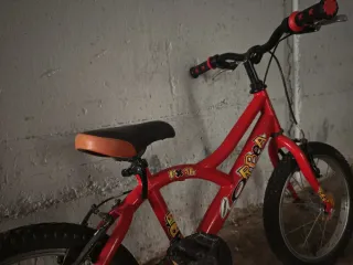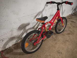 Bicicleta infantil de color rojo con ruedas de 16 pulgadas. - Marca Btwin. - Diseño llamativo con dibujos. - Freno delantero y trasero.