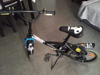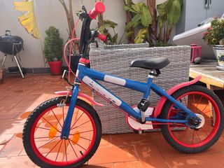 Bicicleta infantil con diseño de Spiderman. - Color azul y rojo. - Manillar con diseño de Spiderman. Casi nueva, poco uso. De 4-7 años. Sin marchas. Ruedas 16 pulgadas. Se aceptan OFERTAS.