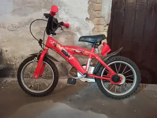 Bicicleta infantil de color rojo con ruedas de 16 pulgadas. Ideal para los más pequeños. Diseño con personajes de Cars.