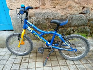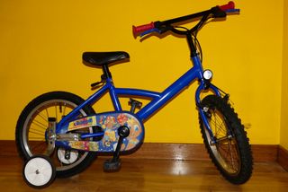 Bicicleta para niños de color azul, en buen estado. Ideal para niños pequeños. - Tiene ruedas de 16 pulgadas. - Está en buenas condiciones, aunque tiene algunas marcas de uso. - Perfecta para aprender a montar en bici.