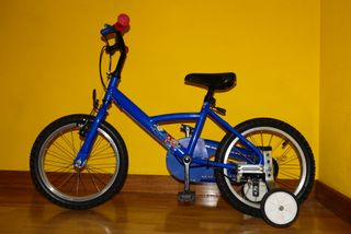 Bicicleta infantil de color azul, ideal para los más pequeños. Se encuentra en buen estado. - Ruedas de 16 pulgadas. - Frenos de mano. - Sillín ajustable.
